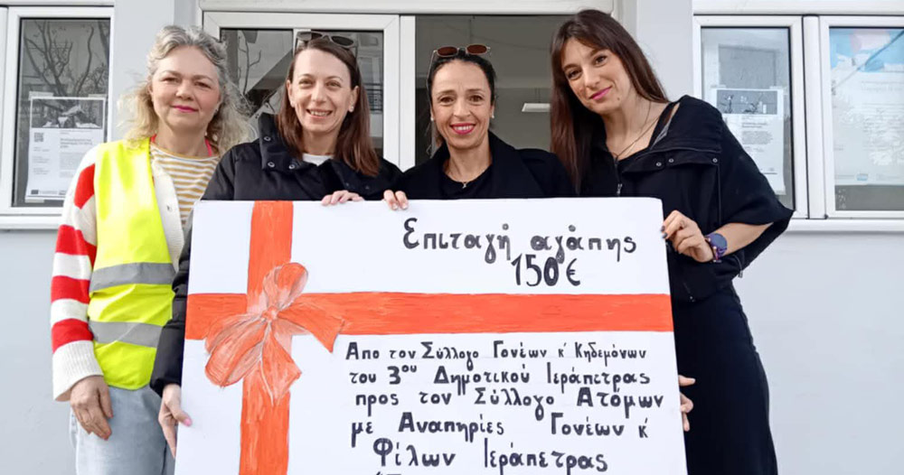 Ο Σύλλογος Ατόμων με Αναπηρίες Ιεράπετρας «Γεώργιος Σουργιαδάκης» εκφράζει τις θερμές του ευχαριστίες προς το 3ο Δημοτικό Σχολείο Ιεράπετρας και τον Σύλλογο Γονέων και Κηδεμόνων του σχολείου για την έμπρακτη και διαρκή στήριξή τους στο έργο και τις δράσεις του Συλλόγου.