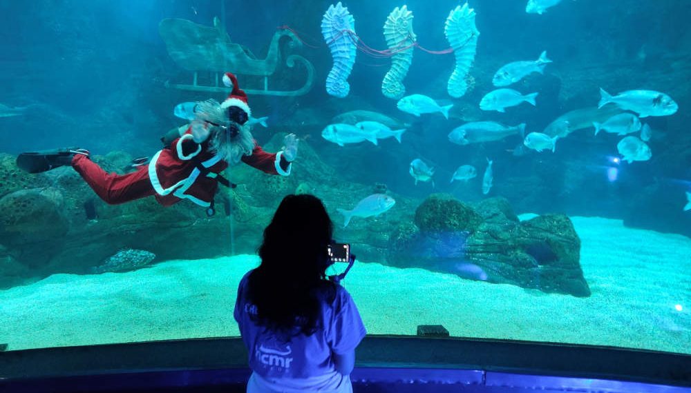 Μια χριστουγεννιάτικη περιήγηση στον υποθαλάσσιο κόσμο, ειδικά για τα παιδιά που αυτές τις γιορτινές ημέρες νοσηλεύονται σε κάποιο από τα νοσοκομεία της Κρήτης, διοργάνωσαν και φέτος η Περιφέρεια Κρήτης και το CretAquarium του Ελληνικού Κέντρου Θαλάσσιων Ερευνών (ΕΛΚΕΘΕ). Ο Άγιος Βασίλης, φορώντας μάσκα και αναπνευστήρα, παρέα με τα θαλάσσια είδη, έστειλε στους μικρούς ασθενείς τις θερμότερες ευχές για καλή ανάρρωση.