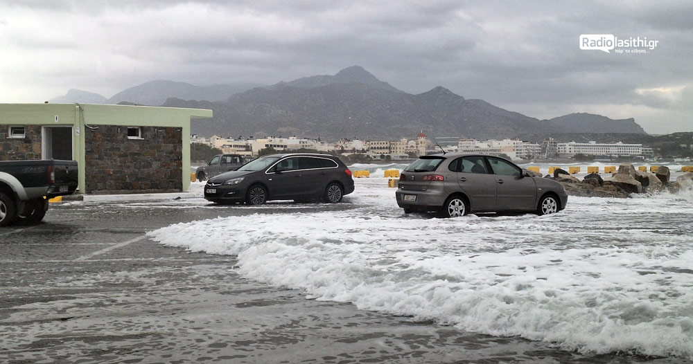 Η κατάσταση κρίνεται ιδιαίτερα σοβαρή στο παραλιακό δημοτικό πάρκινγκ, το οποίο λόγω του έντονου κυματισμού έχει μετατραπεί κυριολεκτικά σε λίμνη. Τα ορμητικά νερά έχουν καλύψει το οδόστρωμα, θέτοντας σε άμεσο κίνδυνο τα οχήματα που βρίσκονται σταθμευμένα πλησίον της ακτογραμμής, με ορατό το ενδεχόμενο παράσυρσής τους από τη δύναμη της θάλασσας.