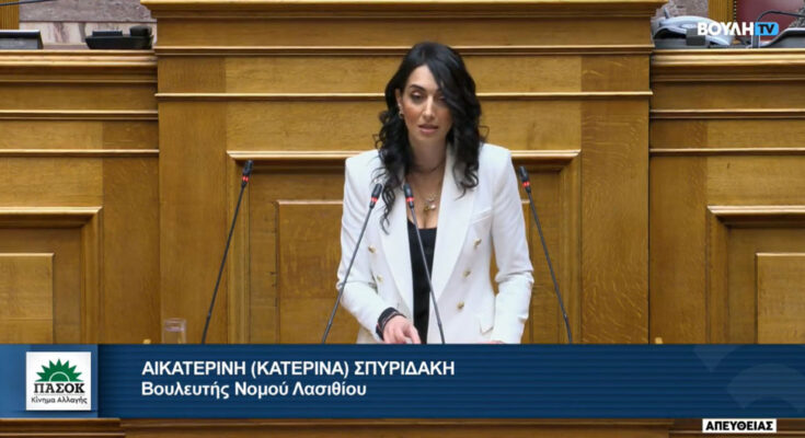 Αναφορά προς την Υπουργό Παιδείας, Θρησκευμάτων και Αθλητισμού κατέθεσε η Βουλευτής Λασιθίου του ΠΑΣΟΚ, Κατερίνα Σπυριδάκη, καταθέτοντας στη Βουλή το κείμενο–παρέμβαση της Δημοκρατικής Συνεργασίας Εκπαιδευτικών Πρωτοβάθμιας Εκπαίδευσης, με το οποίο αναδεικνύεται με τεκμηριωμένο και ανησυχητικό τρόπο η συνολική εικόνα της σχολικής στέγης στη χώρα και η απουσία ενός ενιαίου, δεσμευτικού εθνικού σχεδιασμού.