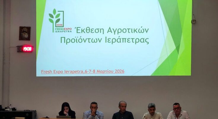 Ο Δήμος Ιεράπετρας στηρίζει με την ενεργή συμμετοχή του τη Fresh Expo Ierapetra 2026, την 1η Έκθεση Αγροτικών Προϊόντων Ιεράπετρας, που θα πραγματοποιηθεί στις 6, 7 και 8 Μαρτίου 2026 στο Δημοτικό Κλειστό Γυμναστήριο Ιεράπετρας «Μάρκος Φωνιαδάκης».