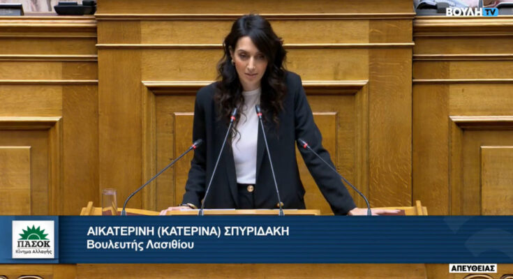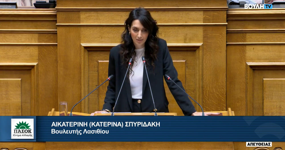 Με πολιτική ευθύτητα, ιστορική μνήμη και σαφή κοινωνικό προσανατολισμό τοποθετήθηκε στην Ολομέλεια της Βουλή των Ελλήνων η Βουλευτής Λασιθίου και Τομεάρχης Τουρισμού του ΠΑΣΟΚ, Κατερίνα Σπυριδάκη, κατά τη συζήτηση του νομοσχεδίου του Υπουργείο Εργασίας και Κοινωνικής Ασφάλισης για την «Εθνική Κοινωνική Συμφωνία» και την ενίσχυση των Συλλογικών Συμβάσεων Εργασίας.