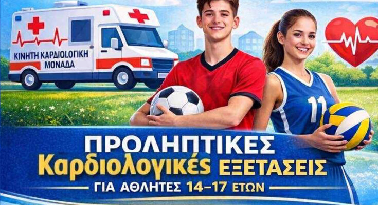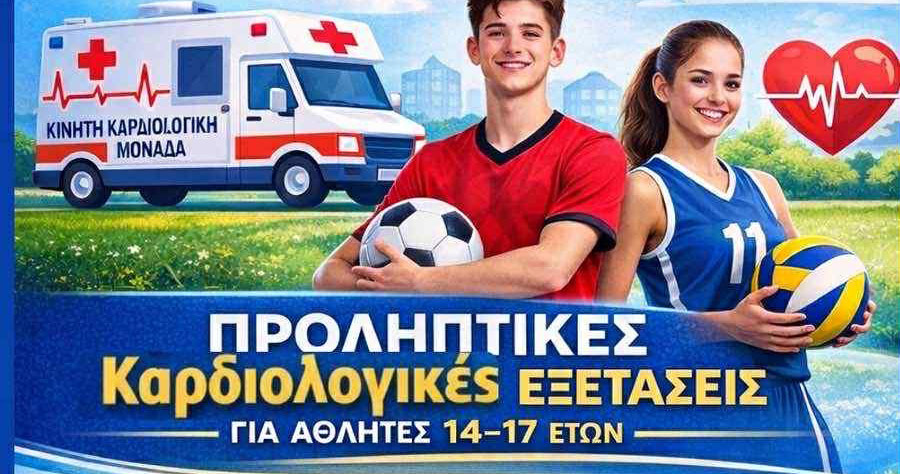 Ο Δήμος Ιεράπετρας σε συνεργασία με την Κινητή Καρδιολογική Μονάδα της Περιφέρειας Κρήτης, θα πραγματοποιήσει δωρεάν καρδιολογικό έλεγχο σε αθλητές/τριες που ανήκουν στην ηλικιακή ομάδα από 14 έως 17 ετών.